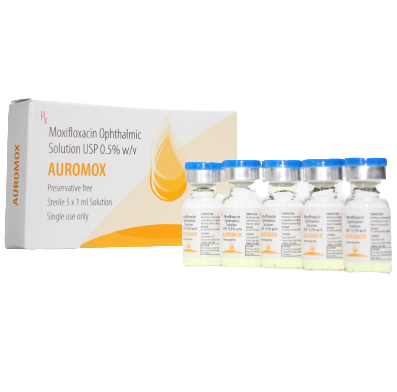 Moxifloxacino Oftálmico al 0.5% libre de conservador. Presentación: caja con 5 viales de 1ml cada uno